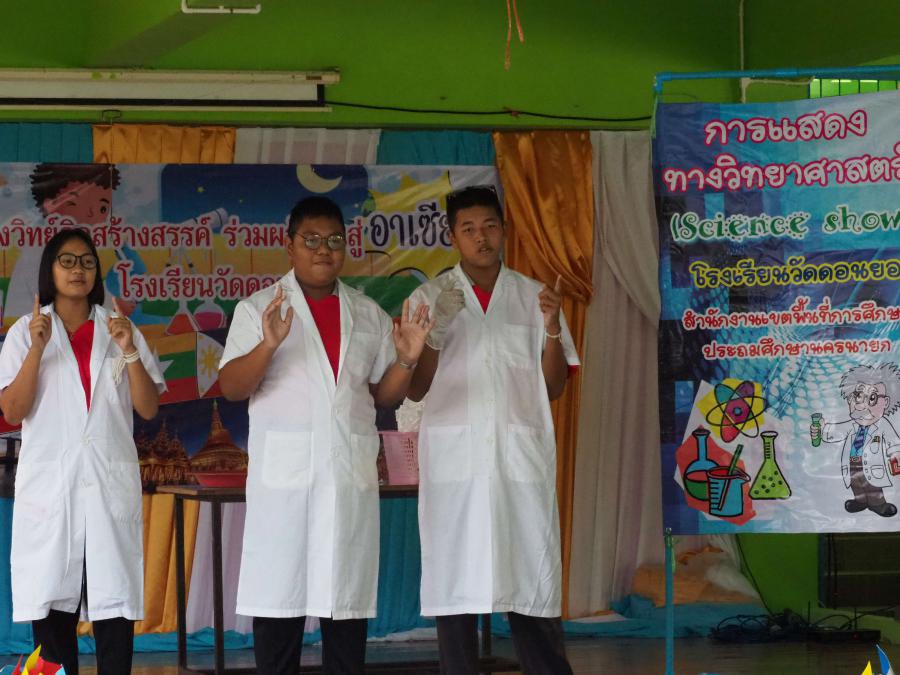 วันที่ 17 สิงหาคม 2561 โรงเรียนวัดดอนยอจัดกิจกรรมพลังวิทย์คิดสร้างสรรค์ ร่วมผลักดันสู่อาเซียน เป็นการบูรณาการความรู้ในวิชาสังคมศึกษา สาระอาเซียน และวิชาวิทยาศาสตร์เข้าด้วยกัน ภายในงานมีกิจกรรมการแสดงทางวิทยาศาสตร์ (Science Show) การแสดงเต้นประกอบเพลงระบบสุริยะ การมอบเกียรติบัตรการประกวดแข่งขัน และกิจกรรมฐานการเรียนรู้ นอกจากนี้ยังมีกิจกรรมการแข่งขันวาดภาพระบายสี รถพลังงานลม ตอบปัญหาวิทยาศาสตร์ (Kahoot) ที่จัดขึ้นในระหว่างวันที่ 14-16 สิงหาคม 2561 นักเรียนทุกคนให้ความสนใจและร่วมกิจกรรมเป็นอย่างดี S:0