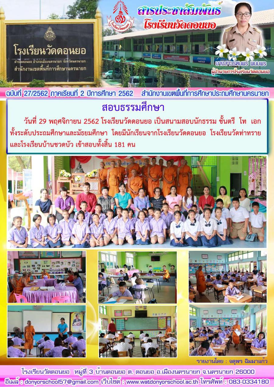 สอบธรรมศึกษา 2562