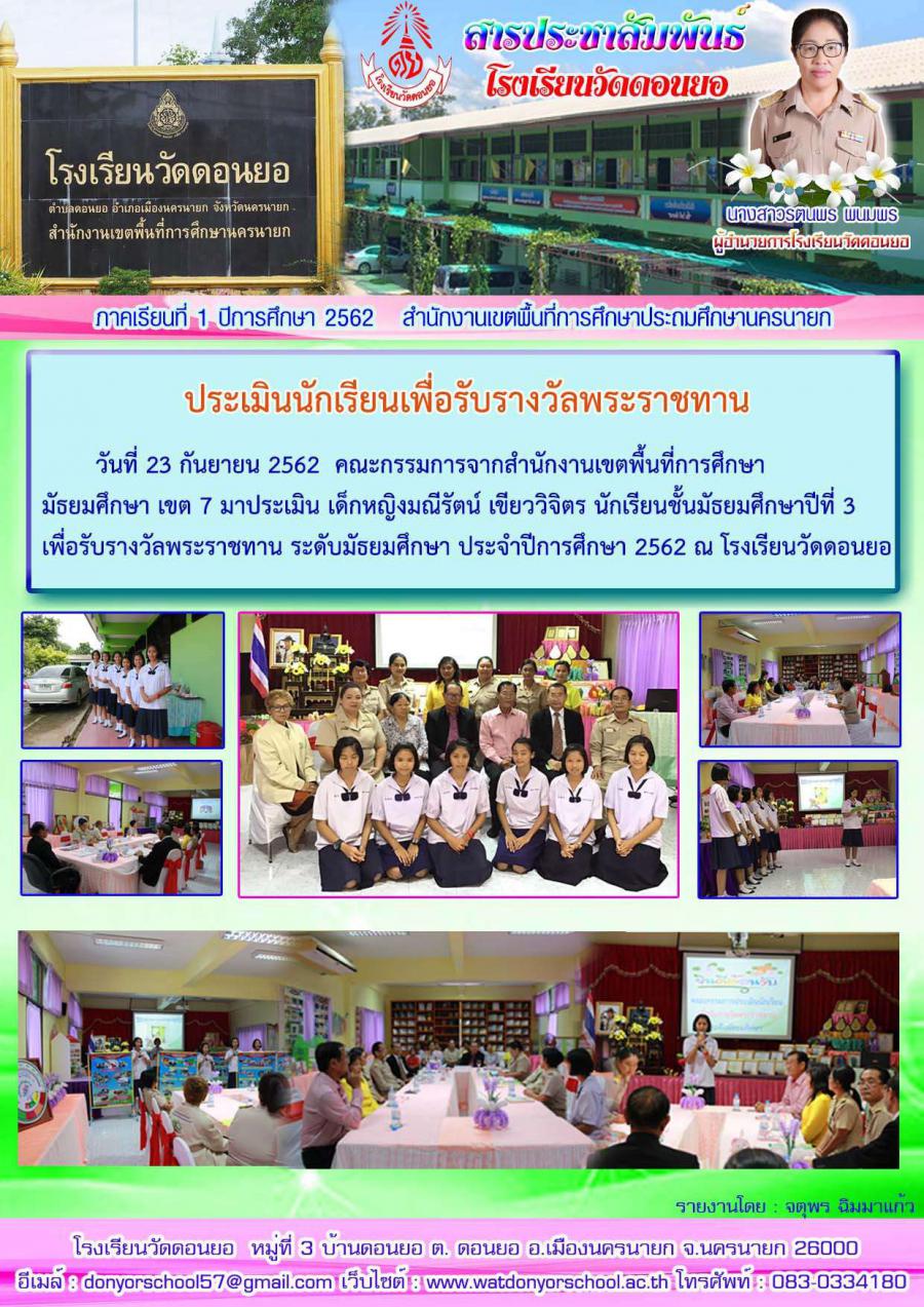 ประเมินนักเรียนเพื่อรับรางวัลพระราชทาน