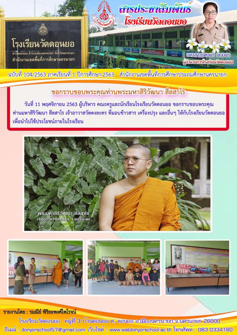 ขอกราบขอบพระคุณท่านพระมหาสิริวัฒนา สีลสาโร